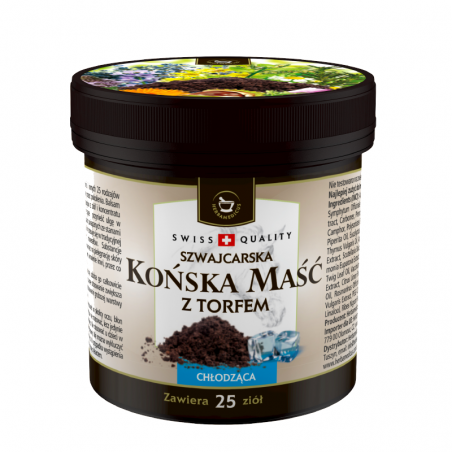 Końska maść z torfem to unikalny balsam ziołowy wyprodukowany z torfu i innych 25 rodzajów ekstraktów ziołowych i roślinnych według tradycyjnej receptury sprawdzonej przez pokolenia.